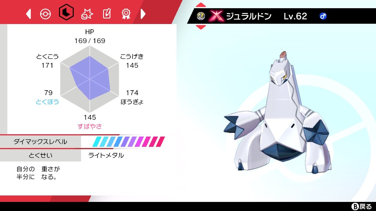 Twitter 上的 イカニンジャ ᔦꙭᔨもんも 5 ジュラルドン ちゃんとキョダイマックスするジュラルドンです この子も結構低確率です 3日かかった どうしてもジュラルドンだけ特性がわからなかった 夢特性以外は体重の変化 ので特性を合わせるのは諦めました